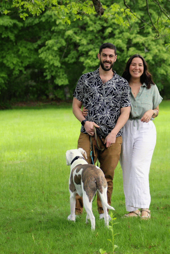 We’re Max and Silvana, owners of Good Neighbors Roofing Co. Our dog, Gus, is just here for a good time.